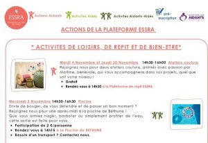 - Une journée festive et informative dédiée aux aidants familiaux, organisée en partenariat avec la Maison de l’Autonomie de Béthune, le Relais des Aidants de Beuvry, les Z’aidants de l’Artois et la Mutualité Française. Au programme : ateliers variés (sophrologie, art-thérapie, socio-esthétique), stands d’information, animations musicales et théâtrales.