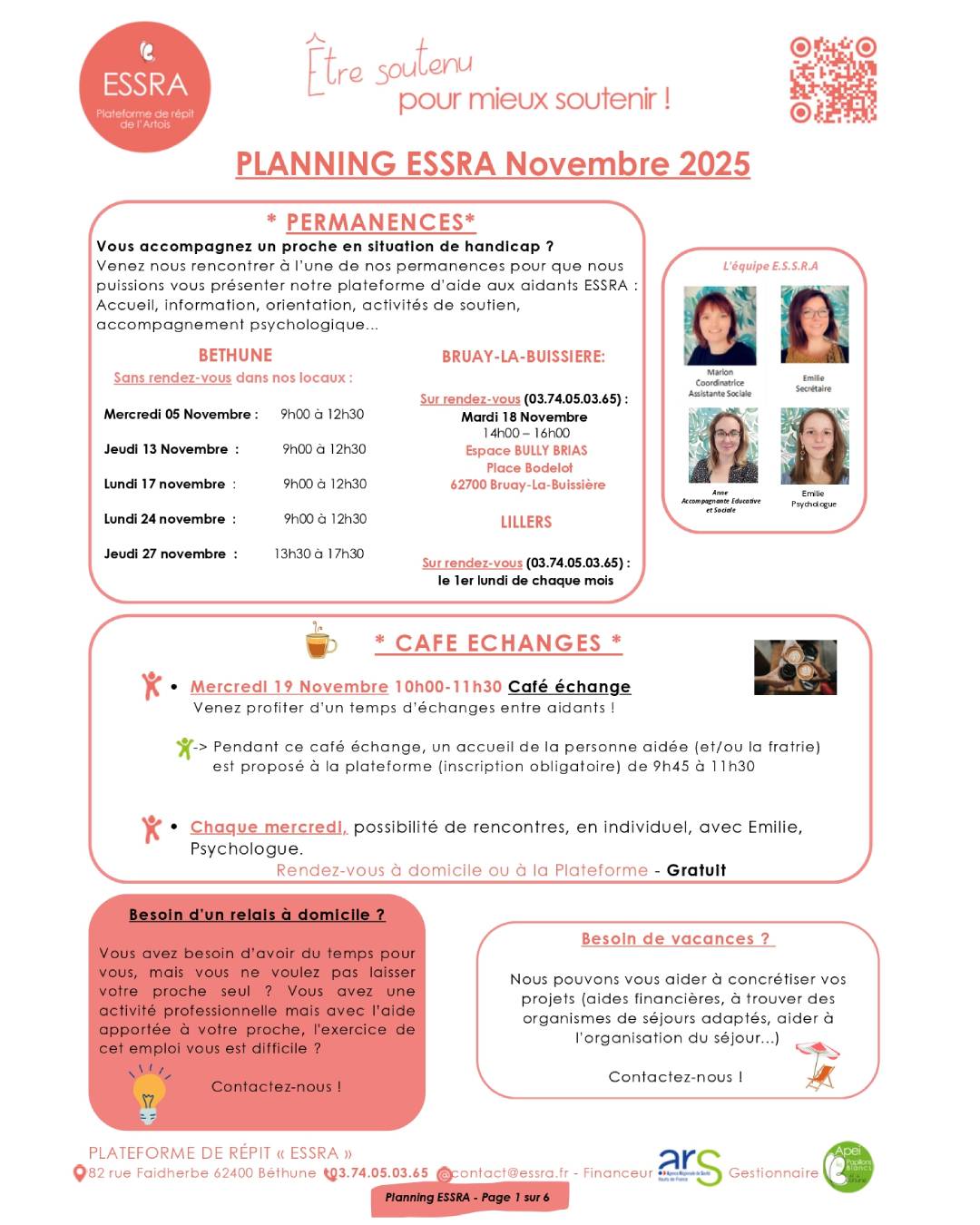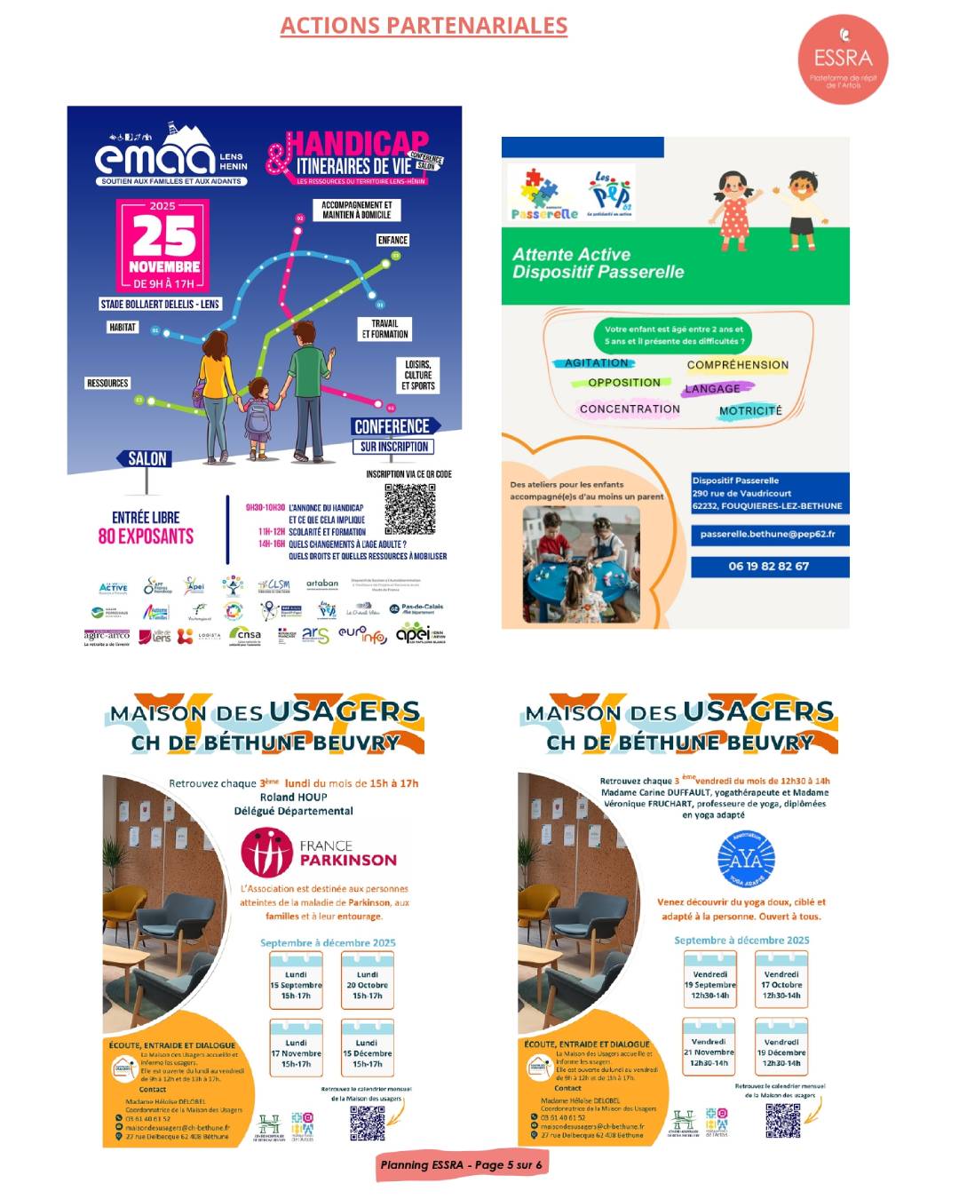 Le programme de septembre de l’ESSRA Plateforme du répit de l’Artois